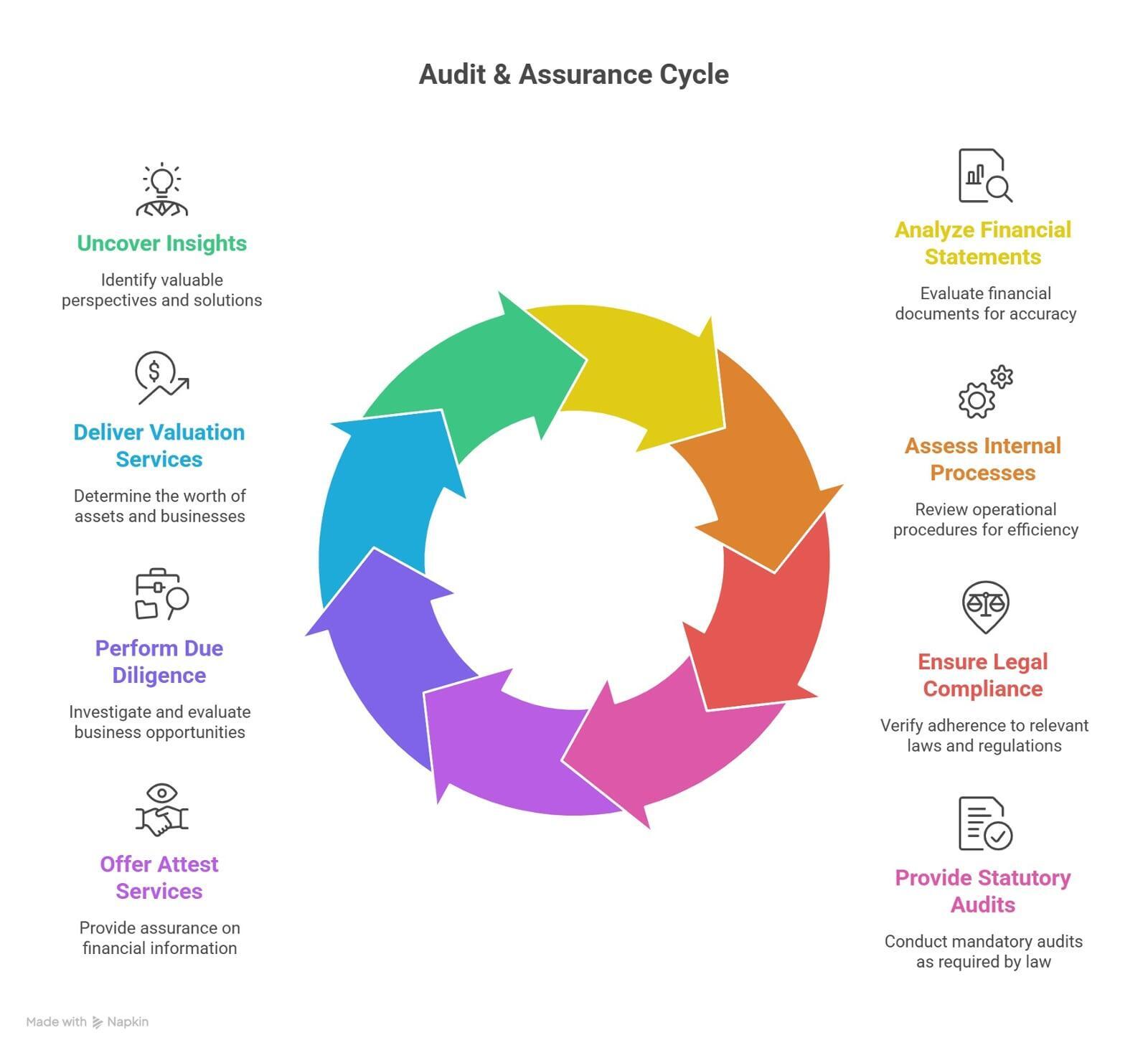 Our services reflect our dedication to high standards, using advanced techniques and expert teams to uncover insights. We provide accurate statutory audits, Attest Services under the Income Tax Act, and deep-dive into Due Diligence & Valuation Services.