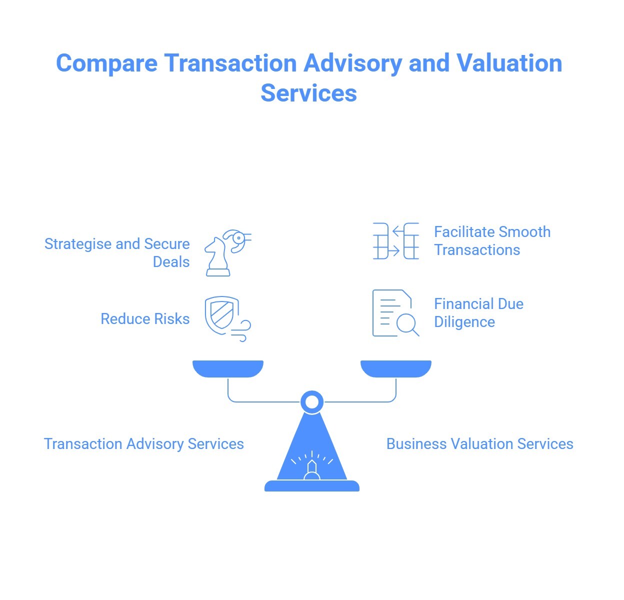 Transaction advisory services help businesses strategise and secure deals via mergers and acquisitions, reducing risks through legal, financial due diligence, and working capital analysis. Mundhe Shaha & Co offers comprehensive transaction advisory, focusing on taxation for M&As, mergers, slump sales, family and shareholder settlements, providing financial and tax due diligence for inbound and outbound deals. Our Business Valuation Services facilitate smooth transactions. Trust us for your financial and tax needs in business deals.